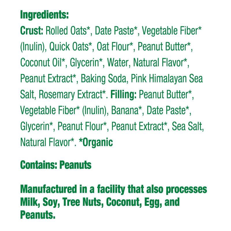 Crust: Rolled Oats*, Date Paste*, Vegetable Fiber* (Inulin), Quick Oats*, Oat Flour*, Peanut Butter*, Coconut Oil*, Glycerin*, Water, Natural Flavor*, Peanut Extract*, Baking Soda, Pink Himalayan Sea …