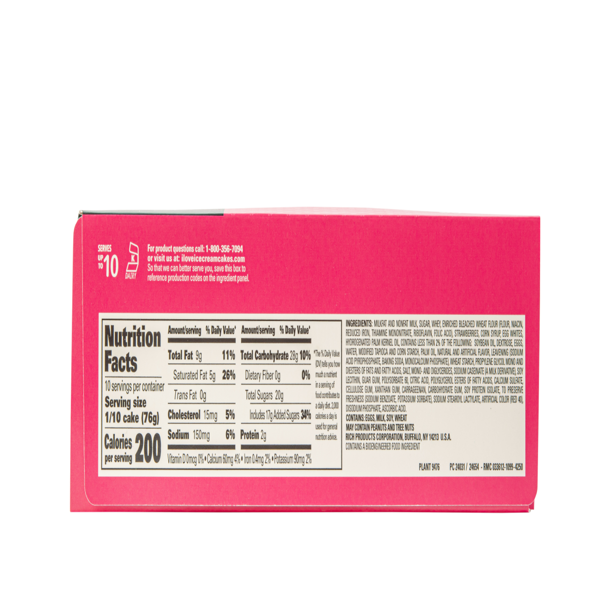 Milkfat and Nonfat Milk, Sugar, Whey, Enriched Bleached Wheat Flour (Flour, Niacin, Reduced Iron, Thiamine Mononitrate, Riboflavin, Folic Acid), Strawberries, Corn Syrup, Egg Whites, Hydrogenated Palm…