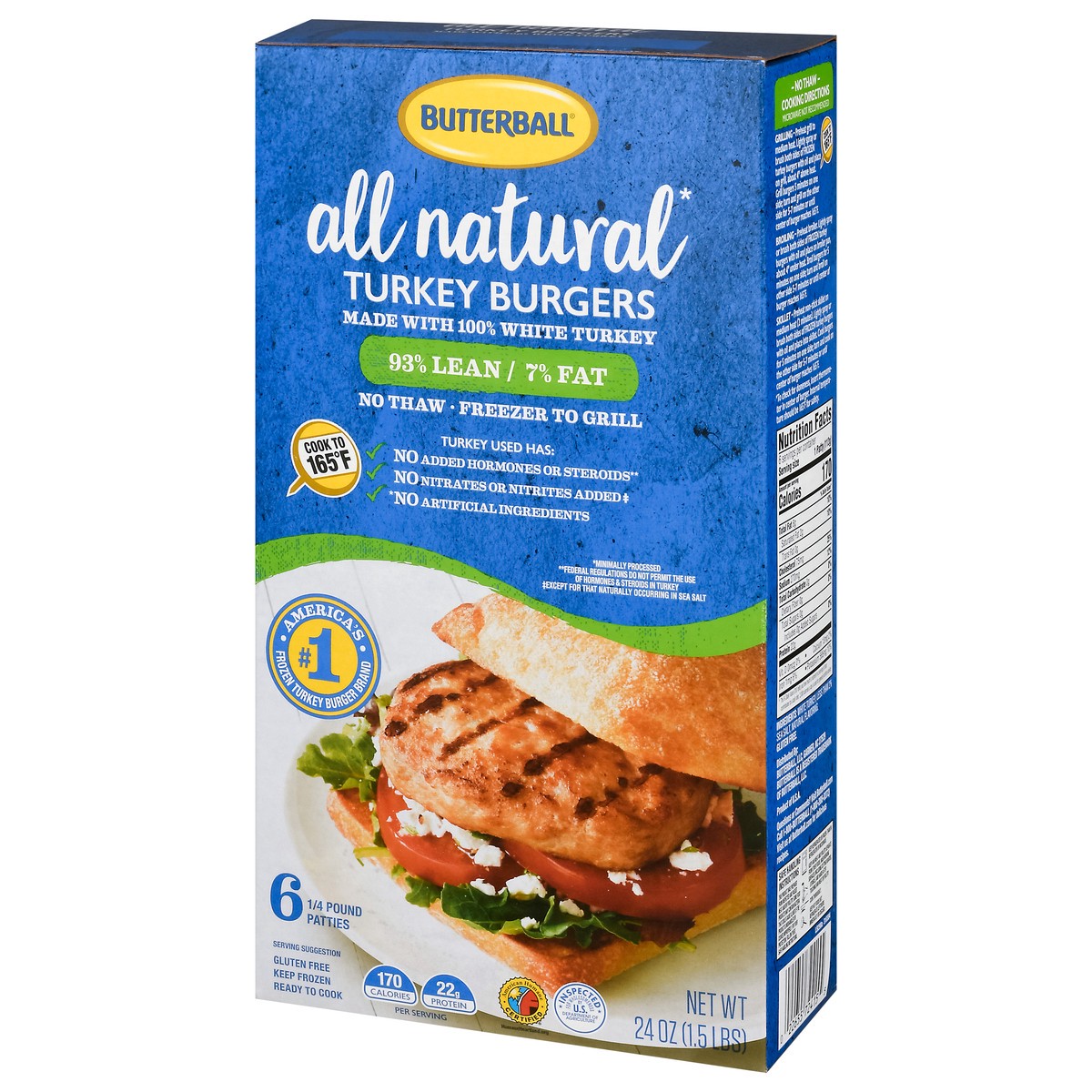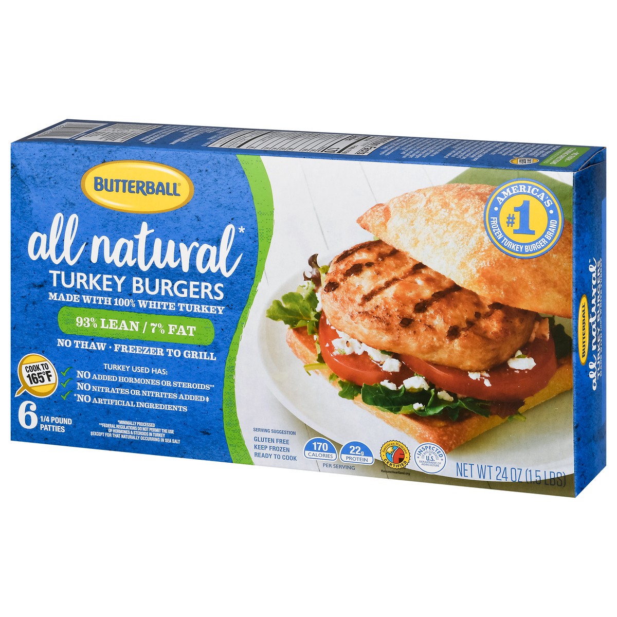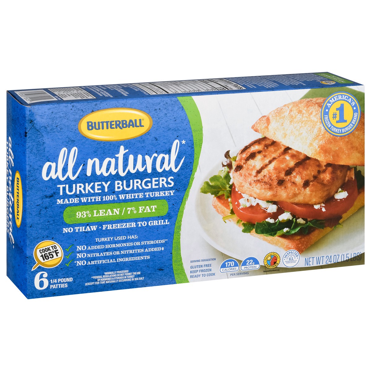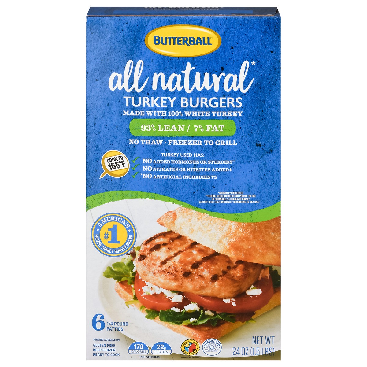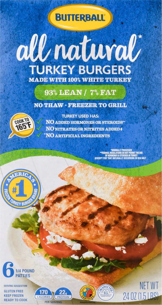 All natural (No artificial ingredients) (Minimally processed). 98% lean/7% fat. Freezer to grill. Turkey has used: No added hormones or steroids (Federal regulations do not permit the use of hormones …