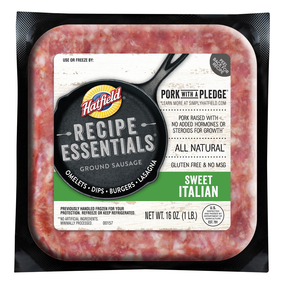Gluten free. Pork with a pledge. Pork raised with no added hormones or steroids for growth (learn more at simplyhatfield.com). All natural (no artificial ingredients. Minimally processed). No MSG. Omeā¦