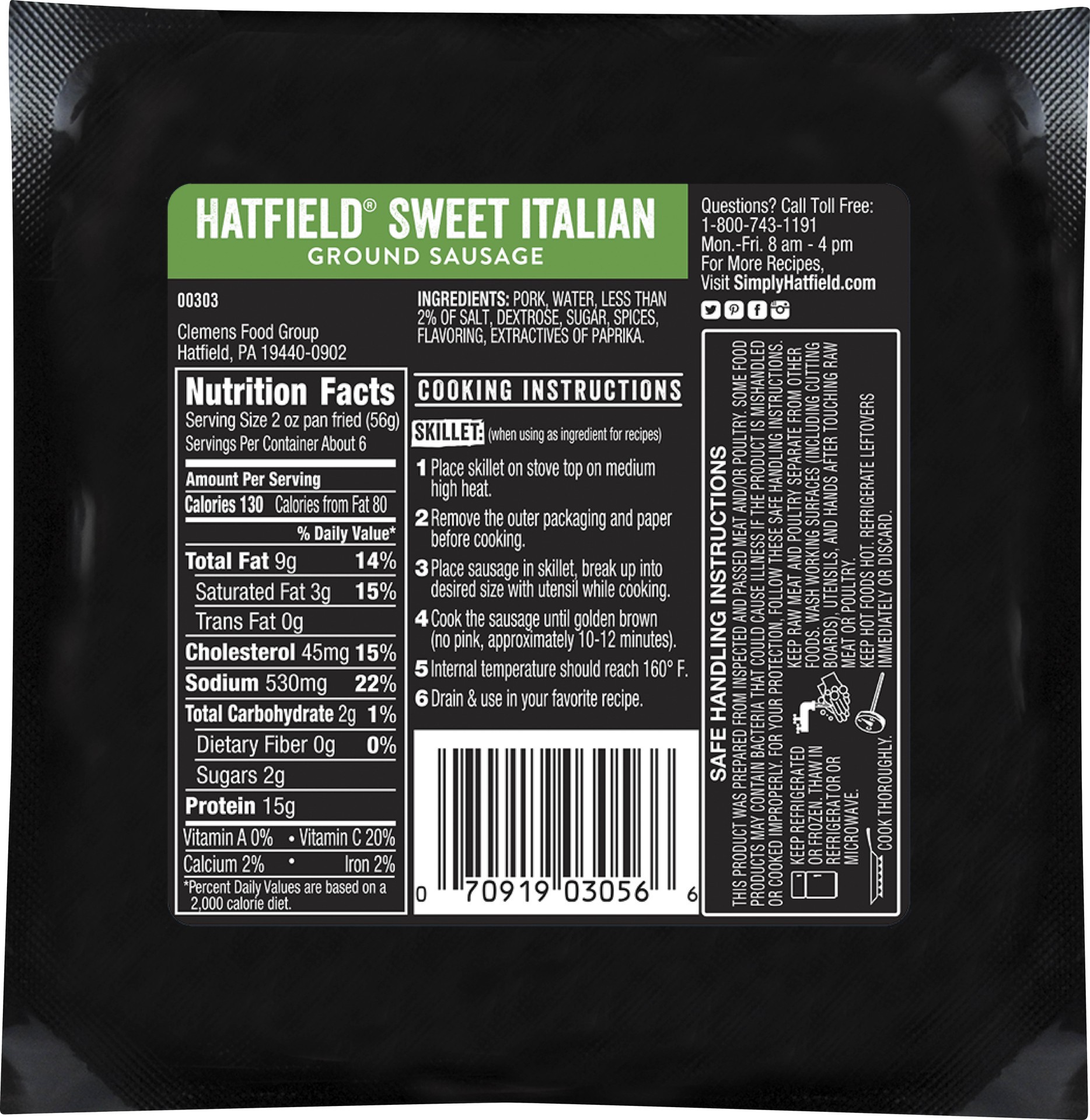Hatfield Ground Sausage Sweet Italian - 16 Oz