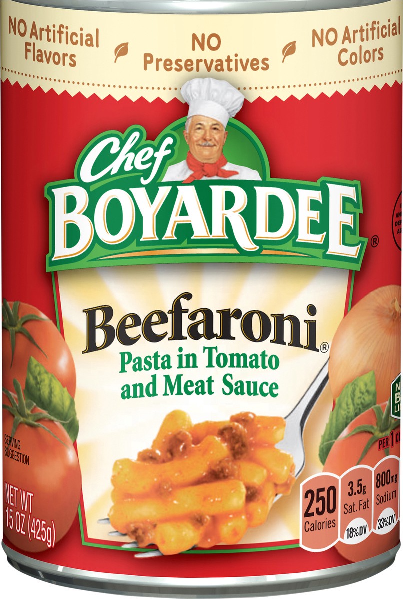 Chef Boyardee Beefaroni is a delicious and convenient prepared meal that is ready to eat in minutes and has delighted families for generations. Made with enriched pasta smothered in rich, Italian-flav…