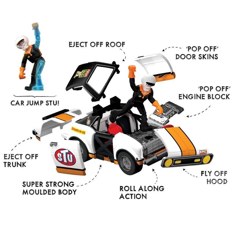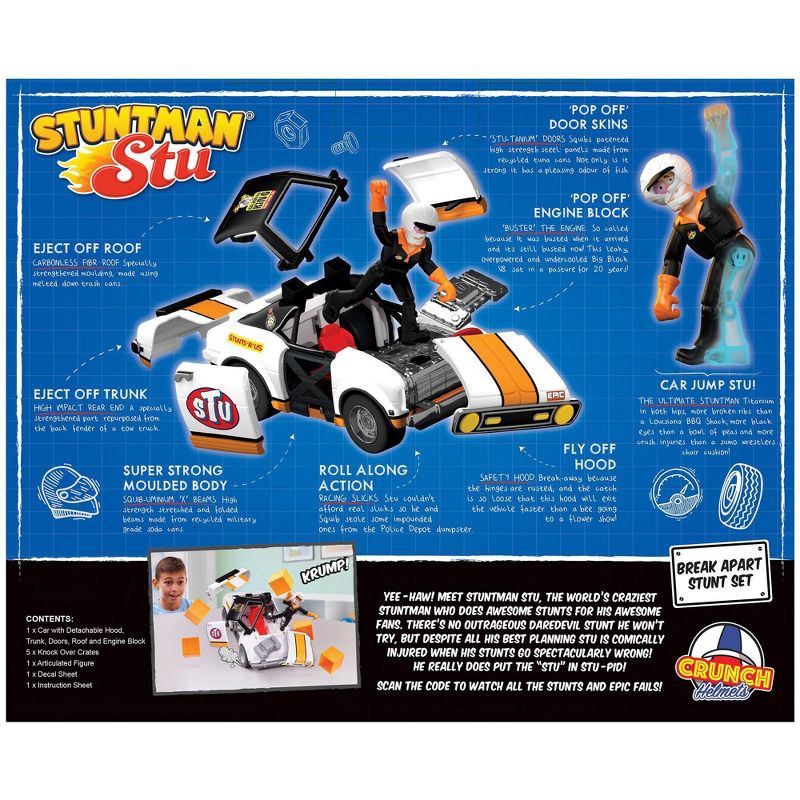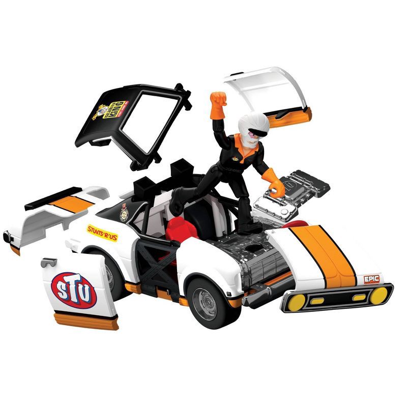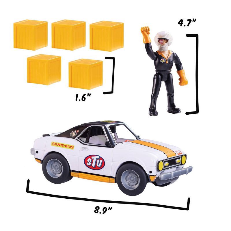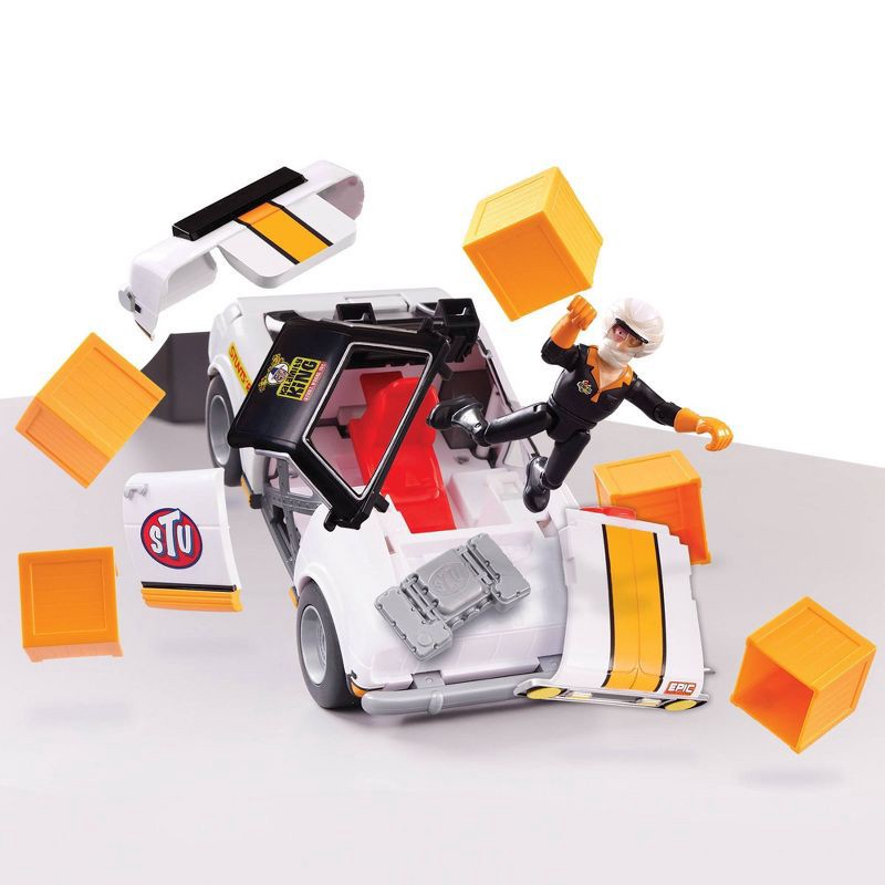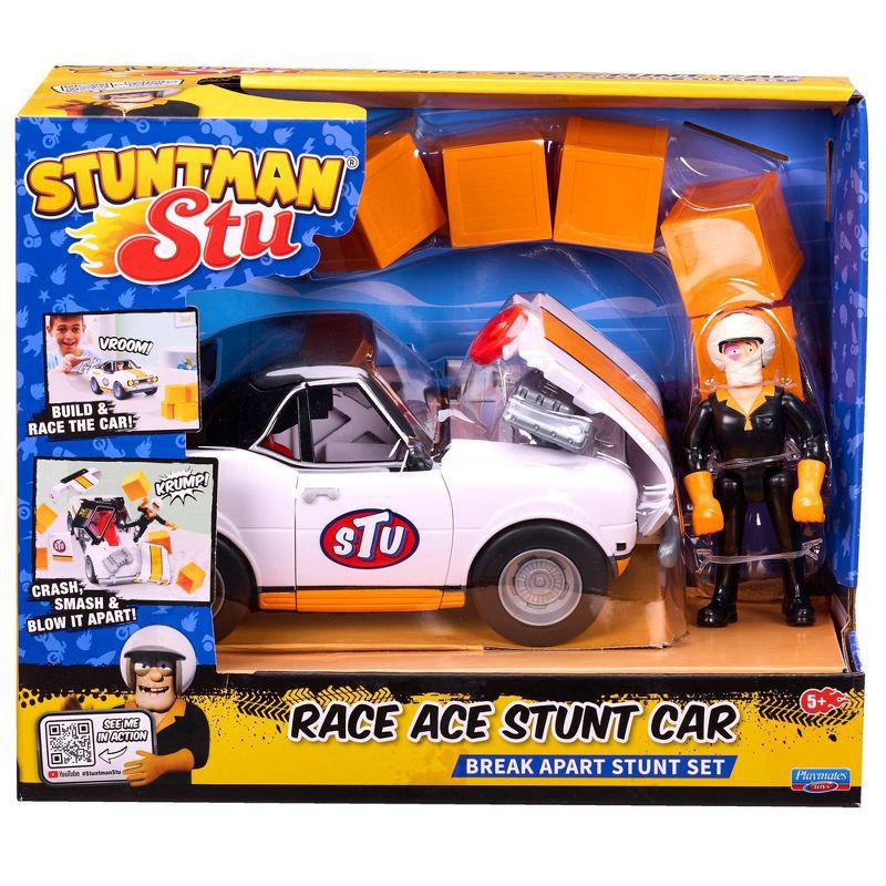 Stuntman Stu Race Ace Stunt Car Break Apart Stunt Set with Action Figure Pop-Off Parts and Crash Crates