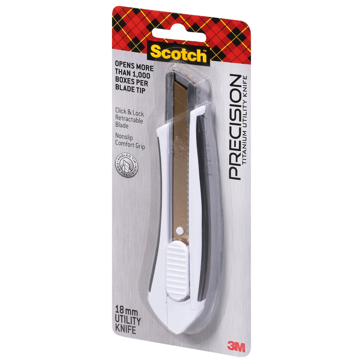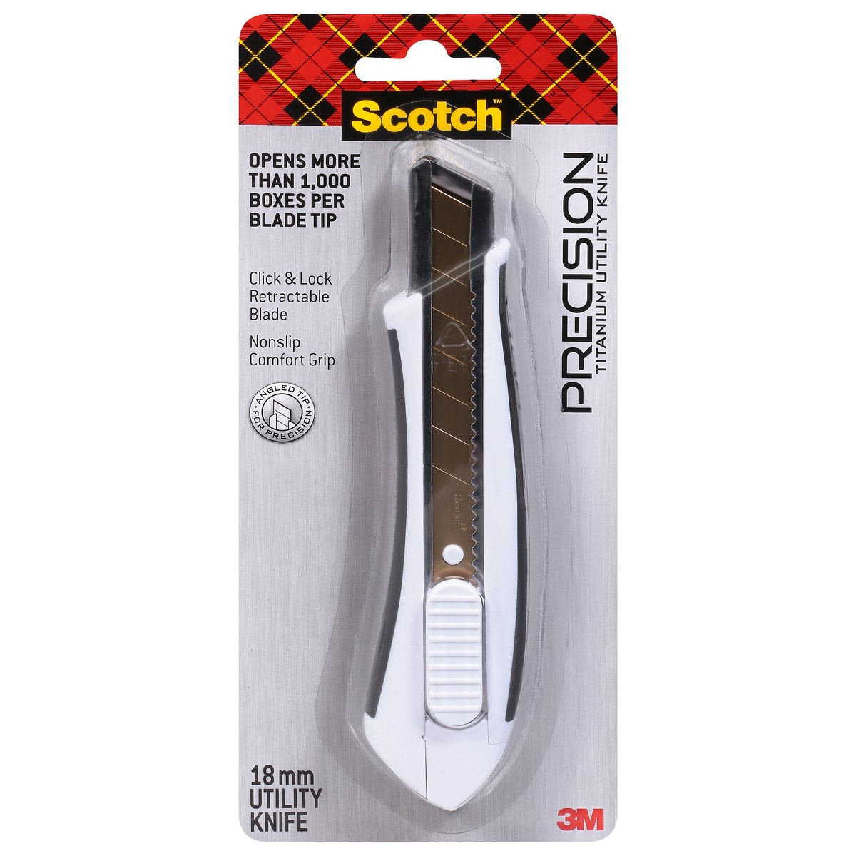 Opens more than 1,000 boxes per blade tip. Click & lock retractable blade. Nonslip comfort grip. Angled tip for precision. Opens more than 1,000 boxes per blade tip. Features nonslip handle that's eas…