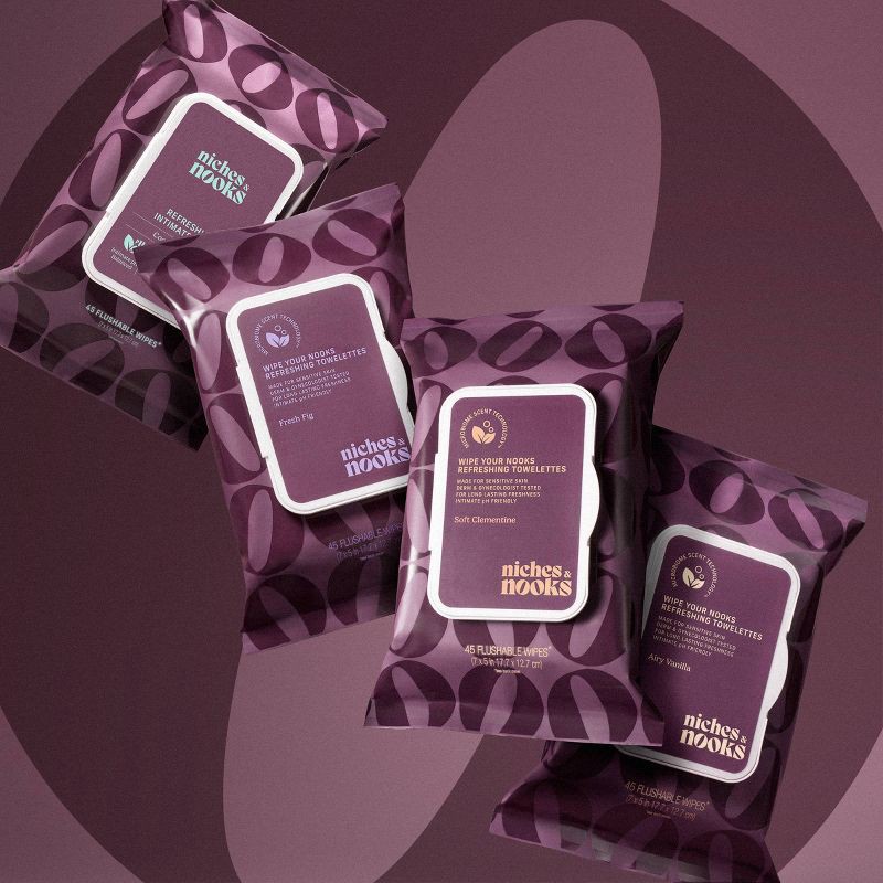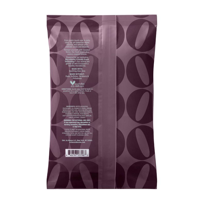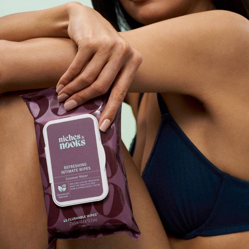 Niches & Nooks Wipe Your Nooks Refreshing Flushable Towelettes - Lush Coconut Water - 45ct