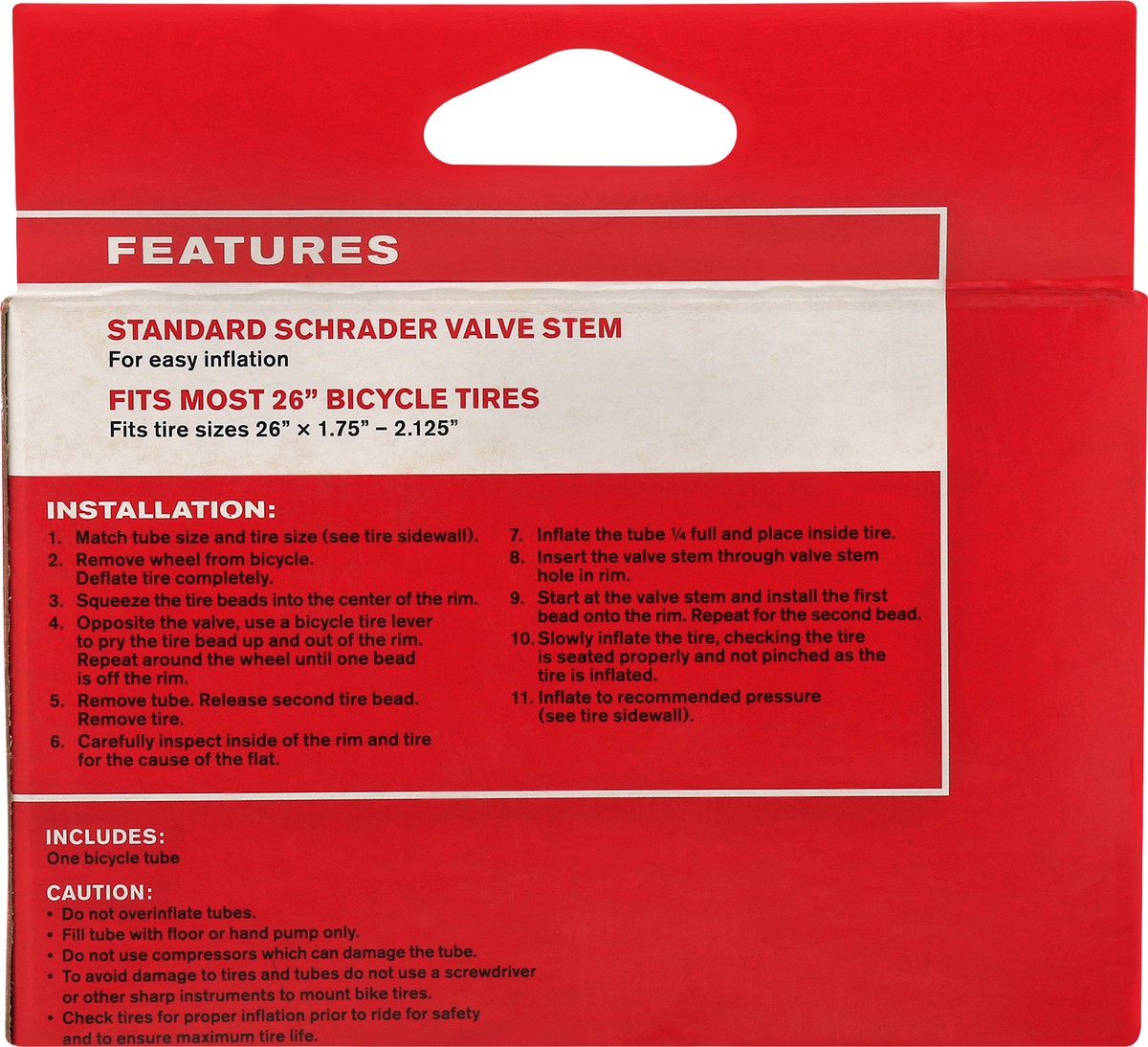Made of sturdy rubber, this Schrader Stem valve tire tube will stand up to all kinds of riding. Make it part of your repair kit for unexpected issues while on the trail.This bike tube fits 26" tires t…