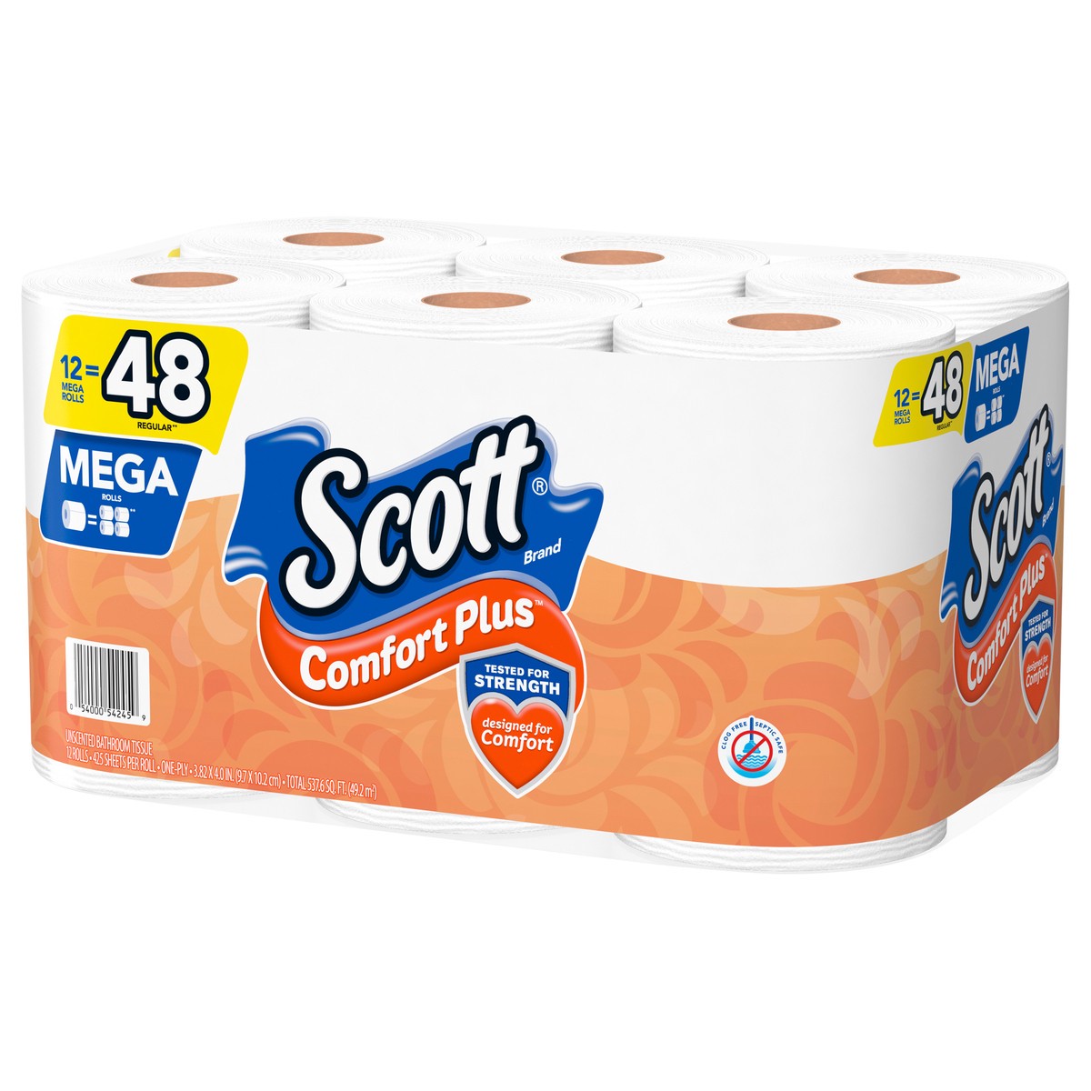 - Scott ComfortPlus 1-ply toilet paper breaks down 6x faster* and is sewer-safe