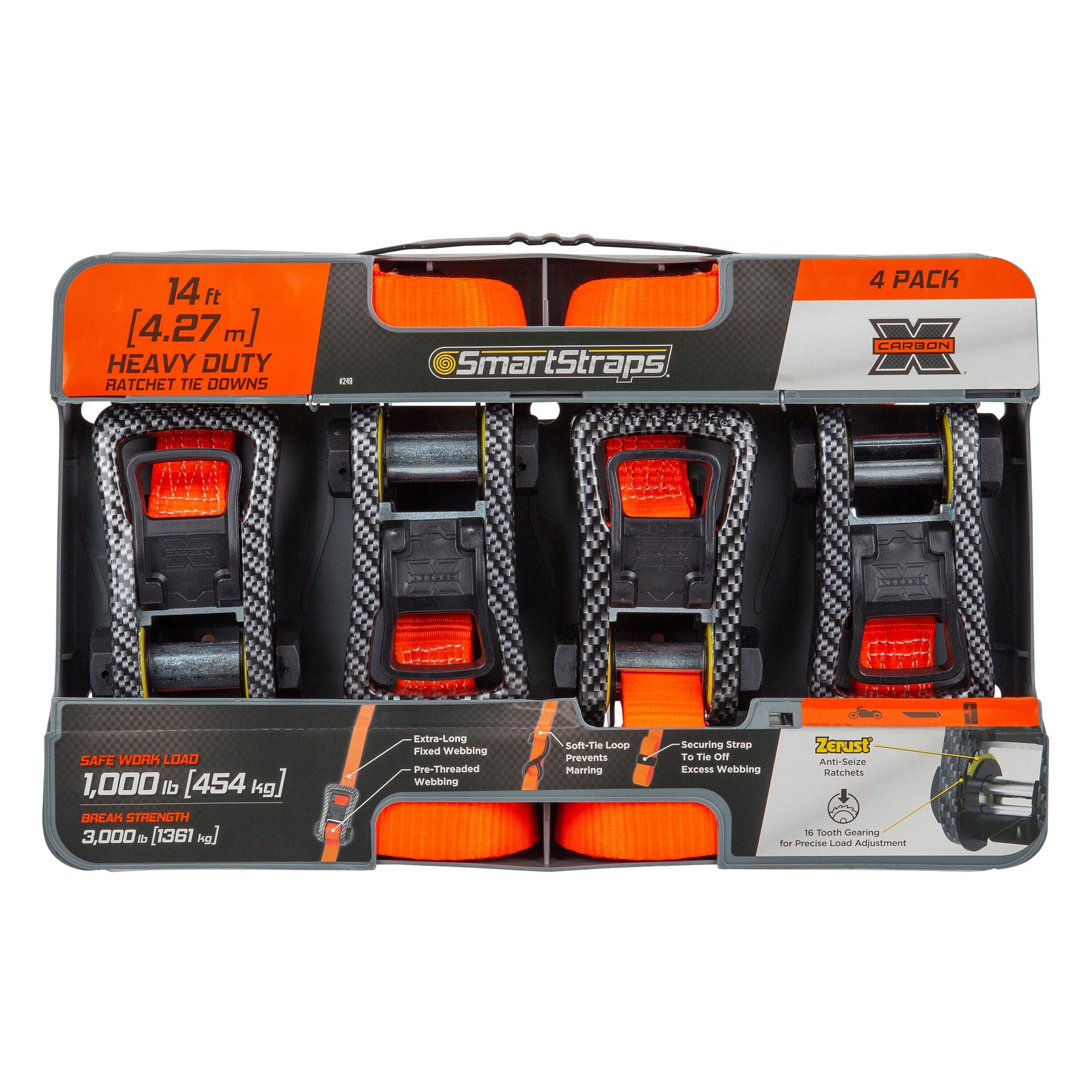 SmartStraps 1-1/2-in x 14-ft Ratcheting Strap Tie Down 3000-lb Break Strength (4-Pack)