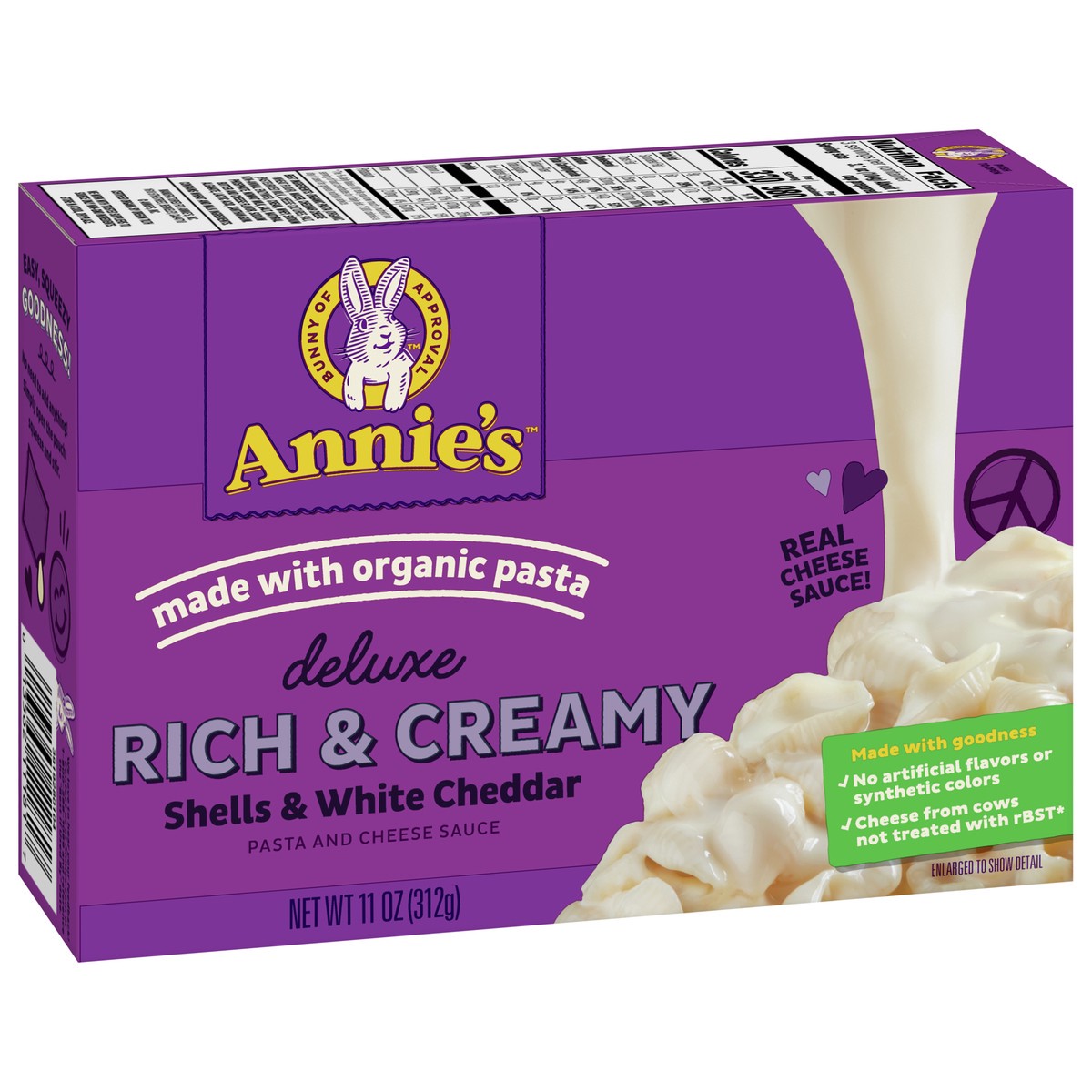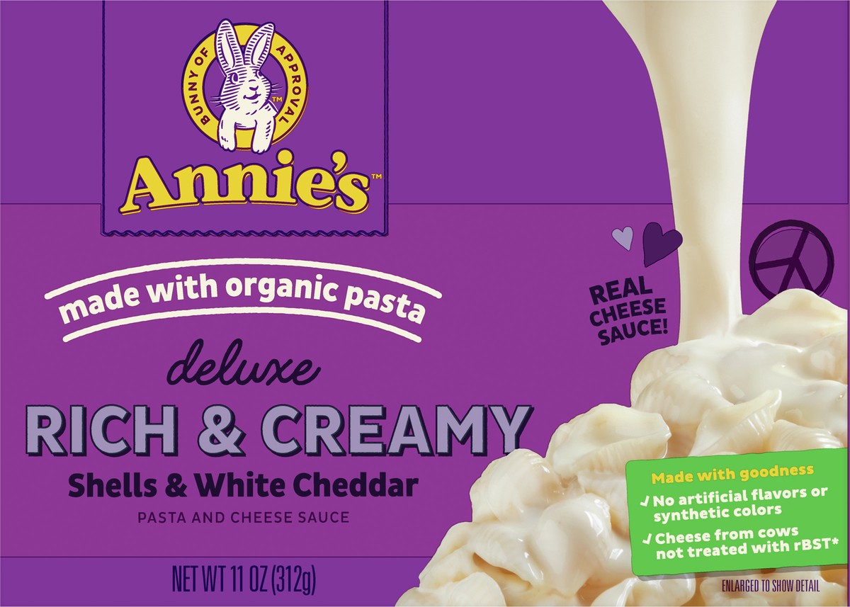 Annie's Deluxe Macaroni and Cheese with Organic Pasta, Real White Cheddar Cheese and Shells, 11 oz