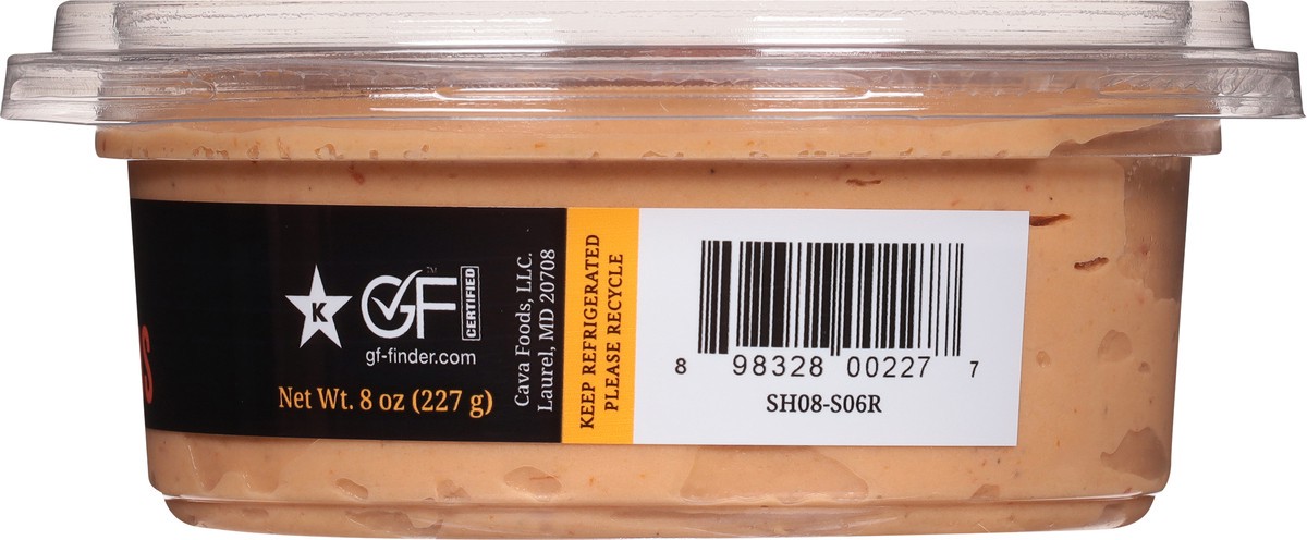 Organic Chickpeas, Sesame Tahini, Water, Tomato Paste (Tomato Paste, Citric Acid), Lemon Juice, Sunflower Oil & Olive Oil, Garlic, Salt, Citric Acid, Spices, Dried Onion & Garlic, Black Pepper.