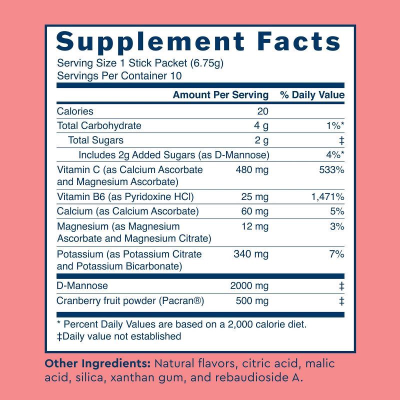 - Dual-Action Formula with 2 Clinically Dosed Ingredients: D-mannose works quickly while whole-fruit cranberry provides sustained activity — together, they help support urinary health throughout the day with continued use