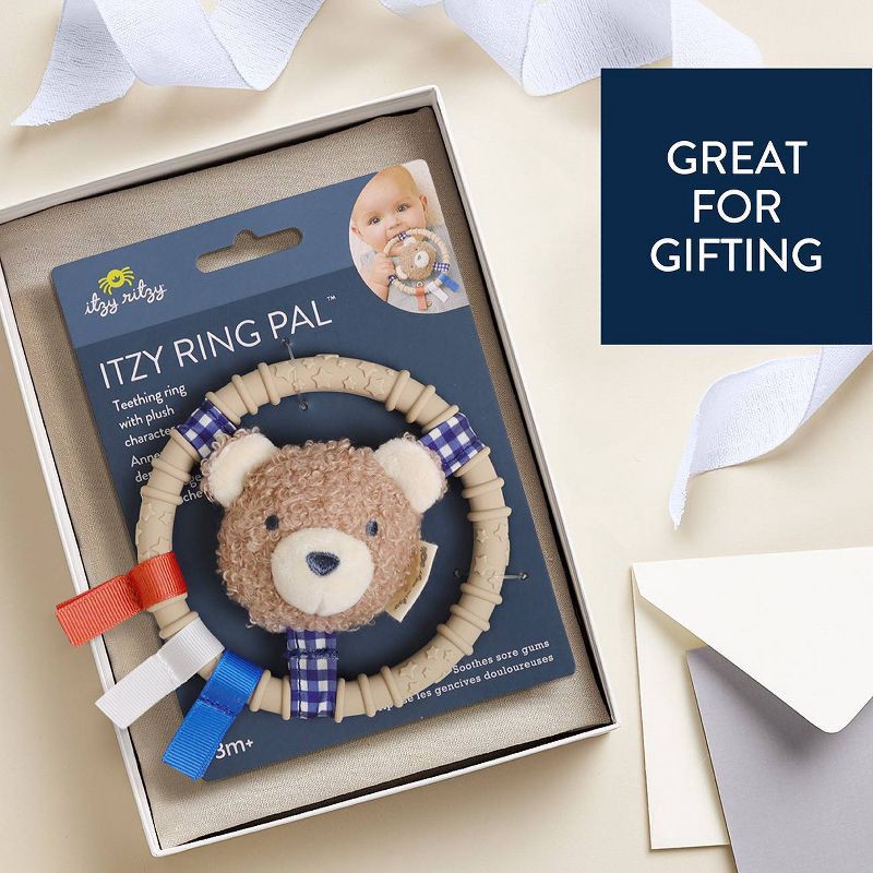 Looking for a friendlier way to teethe? Meet your baby's new BFF: the Itzy Ring Pal. It's the answer for sore gums, featuring a textured silicone ring paired with adorable plush characters, colorful r…