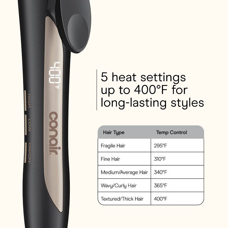- Custom Heat Control: 5 settings up to 400°F for every hair type.