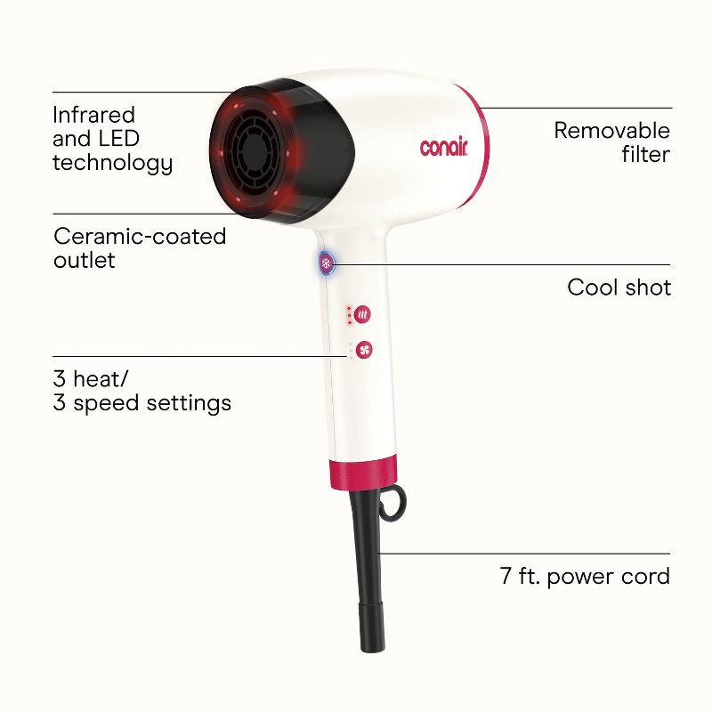 - Infrared and LED Technology Dryer: Dry hair more efficiently with less damage, leaving hair more frizz-free and shiny