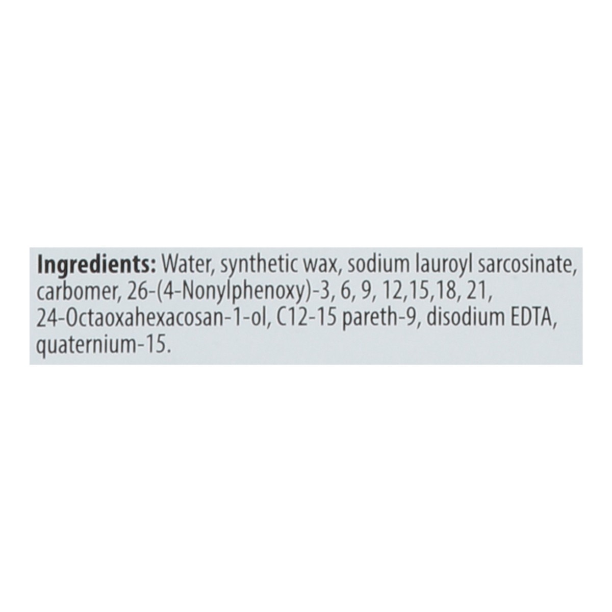 Water, Synthetic Wax, Sodium Lauroyl Sarcosinate, Carbomer, 26-(4-Nonylphenoxy)-3, 6, 9, 12.15.18, 21, 24-Octaoxahexacosan-1-Ol, C12-15 Pareth-9, Disodium EDTA, Quaternium-15.