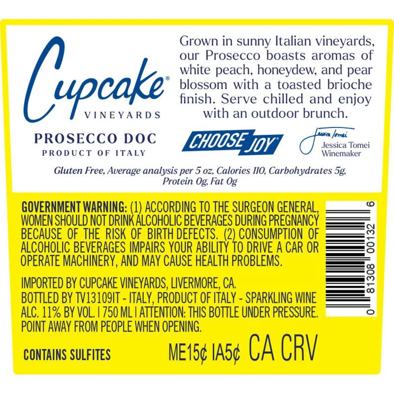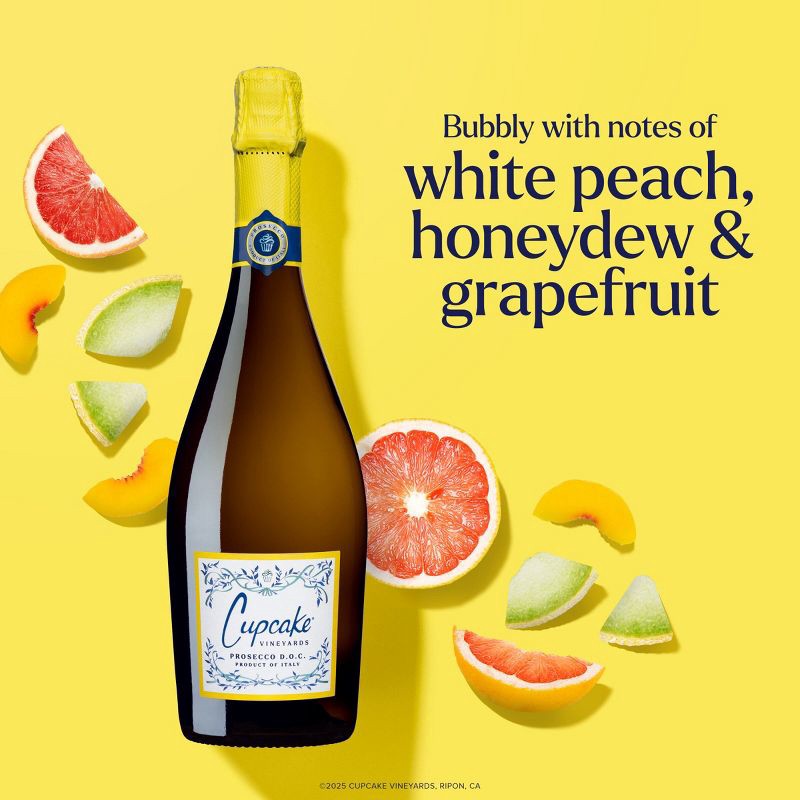 - Cupcake® Vineyards Prosecco Cupcake Vineyards Prosecco sparkling wine bursts with aromas of white peach, honeydew, and pear blossom that lead to a toasted brioche finish.