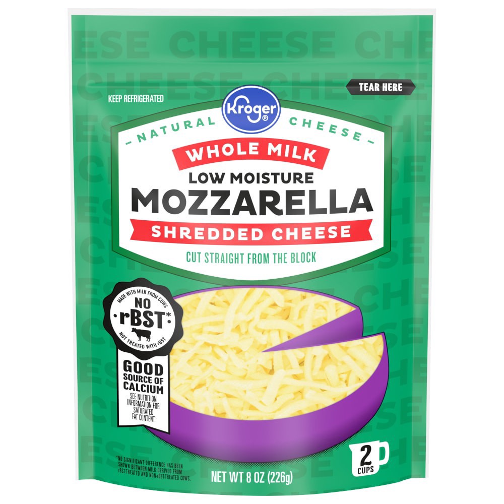 Kroger® Whole Milk Mozzarella Shredded Cheese is a mild, milky product made with whole, pasteurized milk. With a low-moisture content, this cheese is perfect for adding mozzarella yumminess to dinner …