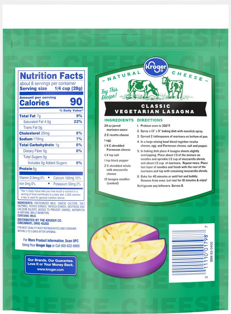 Kroger Whole Milk Shredded Mozzarella Cheese