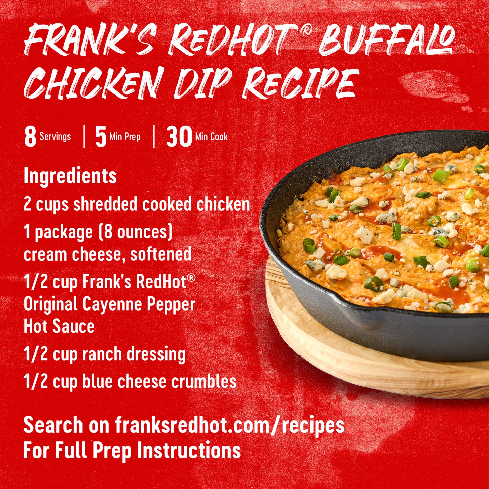Frank's RedHot Original Cayenne Pepper Hot Wing Sauce is made with a signature blend of aged cayenne peppers to add a kick of heat and whole lot of flavor to your favorite foods. Bring the heat to buf…