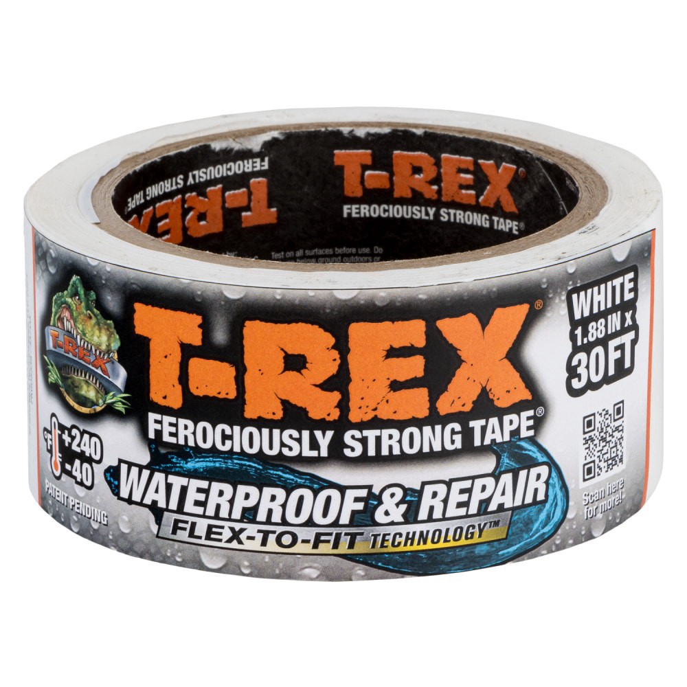 T-Rex® Waterproof & Repair White Tape is what you need when repairs in wet, rough or other hard-to-stick areas are necessary. Use for everyday indoor and outdoor fixes, including plumbing, automotive…