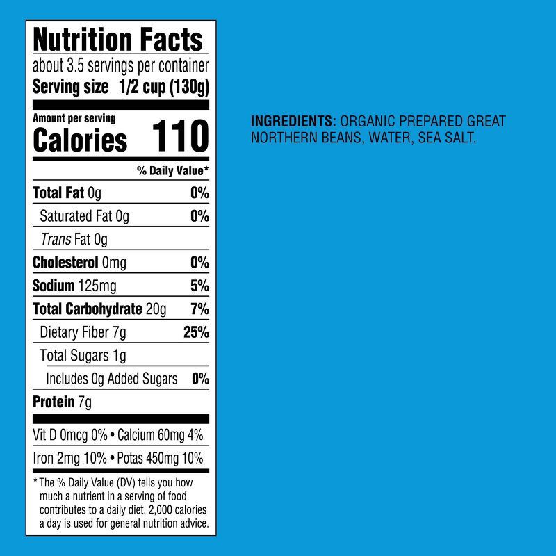ORGANIC PREPARED GREAT NORTHERN BEANS, WATER, SEA SALT.