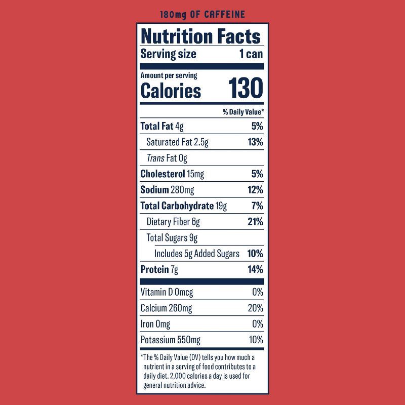 Reduced Fat Milk, Coffee (Water, Coffee), Cane Sugar, Contains Less Than 1% of: Acacia Gum, Gellan Gum, Lactase, Natural Flavors, Nitrous Oxide, Disodium Phosphate, Trisodium Phosphate