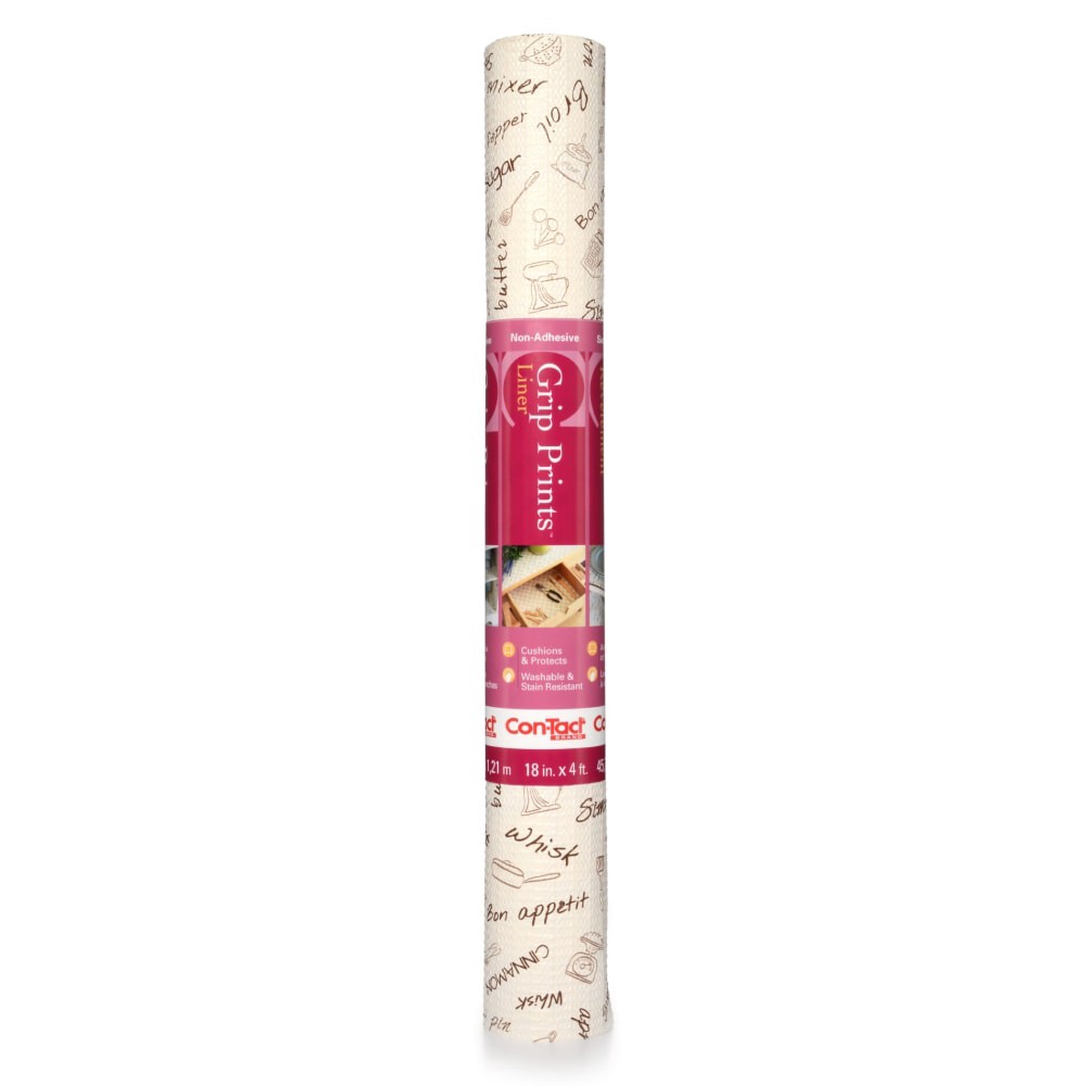 Con-Tact Brand's Non-Adhesive Grip Prints shelf liner offers a smooth, washable and water-proof surface, is durable and protective, and the cushioned grip backside stays firmly in place without adhesi…