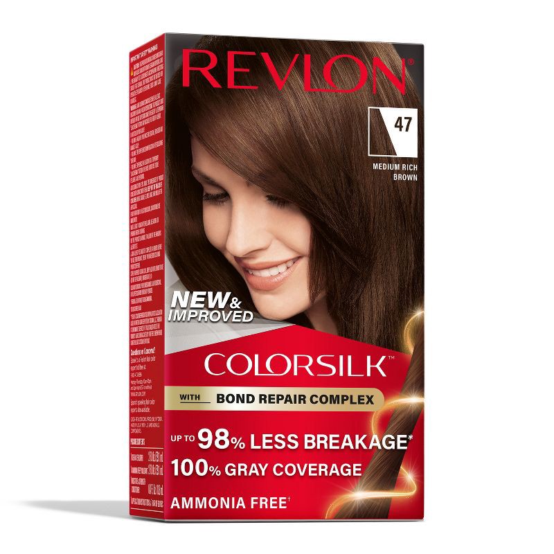 Revlon ColorSilk Permanent Hair Color with Bond Repair Complex - 47 Medium Rich Brown - 4.4 fl oz: Ammonia-Free Formula