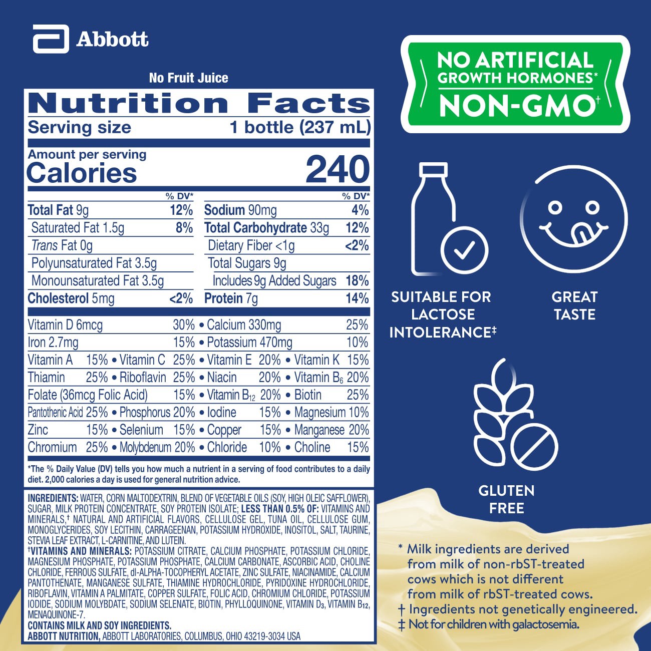 Water, Corn Maltodextrin, Sugar, Blend of Vegetable Oils (Canola, Corn), Milk Protein Concentrate, Soy Protein Isolate, Nonfat Milk, Less than 0.5% of: Vitamins & Minerals (Potassium Citrate, Calc…