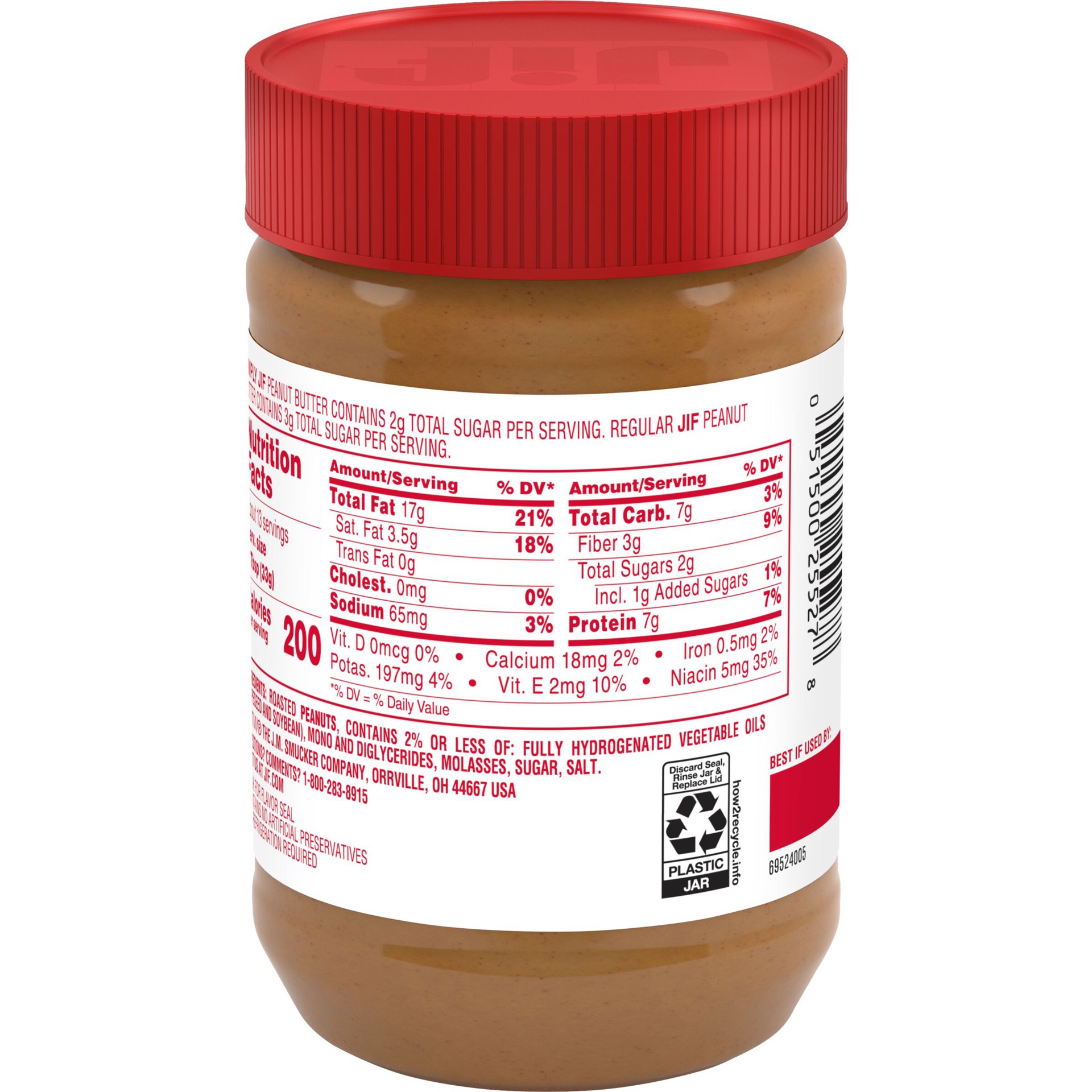 Fresh-roasted peanut taste with low sodium and 33% less sugar than regular Jif Peanut Butter.