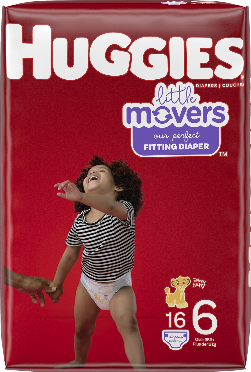 Huggies Little Movers Baby Diapers, Size 6, 16 Ct