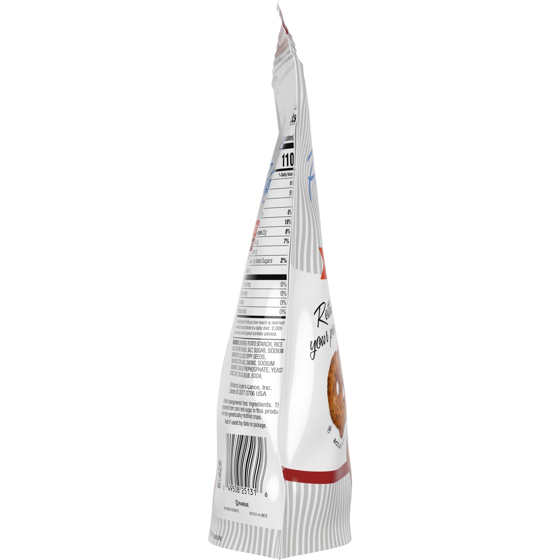 INGREDIENTS: CORNSTARCH, POTATO STARCH, RICE FLOUR, CORN FIBER, PALM OIL, SALT, SUGAR, SODIUM CARBOXYMETHYLCELLULOSE, POPPY SEEDS, SUNFLOWER LECITHIN, GARLIC, ONIONS, SODIUM BICARBONATE, SODIUM ACID P…