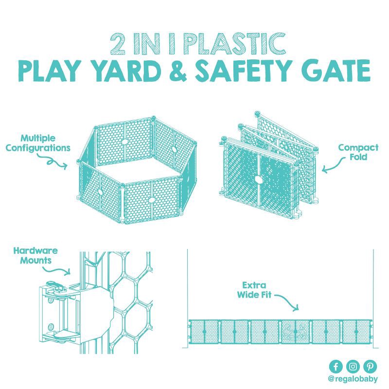 Regalo 2-in-1 Play Yard and Baby Gate: Freestanding Design, 192 Inches Extended Length, Patio Use