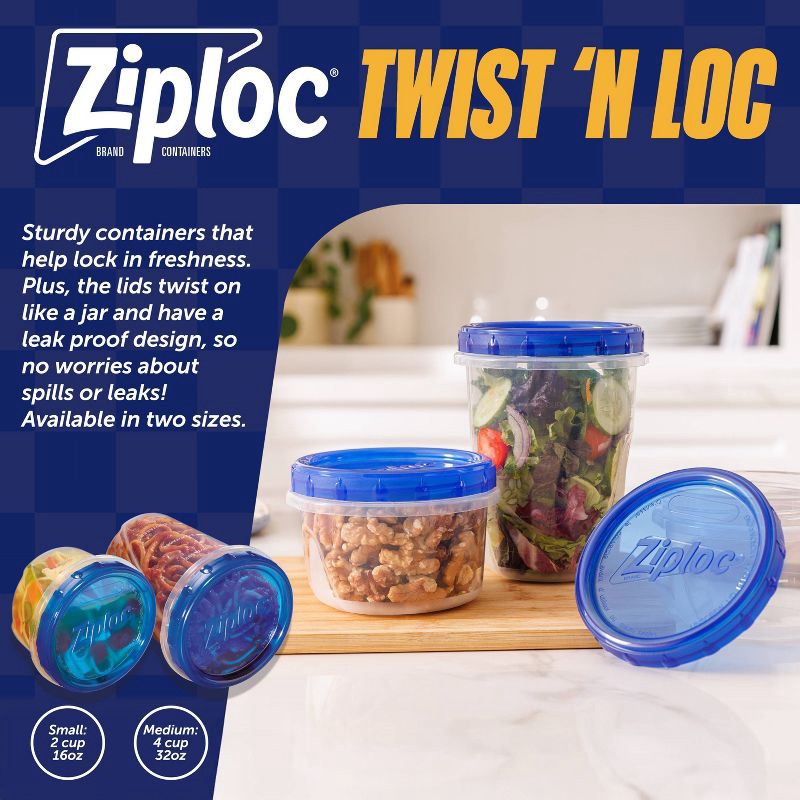 - Food Storage: Ziploc® Twist 'n Loc® food storage containers help Loc®k in freshness