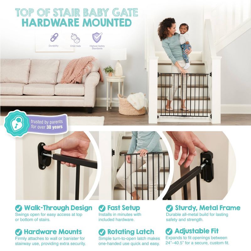 Regalo Top of Stair Baby Gate - 40.5" - Black