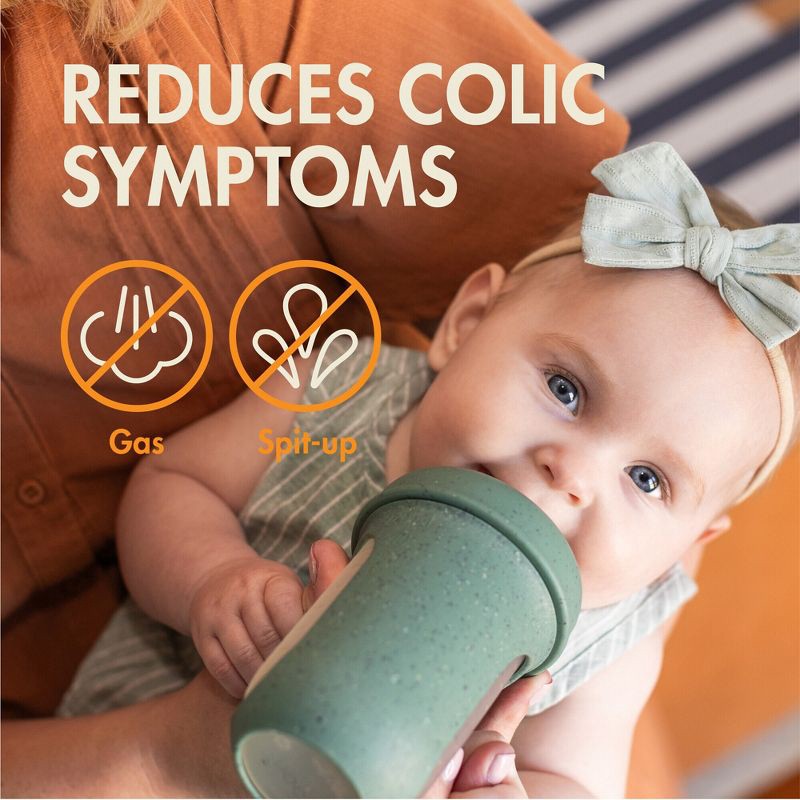 KICK COLIC TO THE CURB NURSH bottles feature a revolutionary air-free feeding design with a 100% silicone pouch that collapses as your little one drinks, helping prevent colic symptoms like gas and sp…