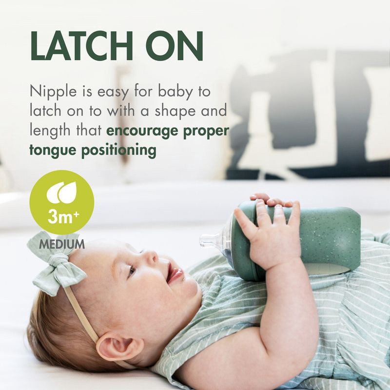 - Latch On: Nipple is easy for baby to latch on to with a shape and length that encourage proper tongue positioning