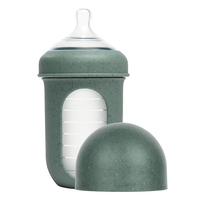Boon Nursh Silicone Baby Bottle with Collapsible Silicone Pouch - Green Speckle - 8 fl oz: Level 2 Medium Flow, BPA-Free, PVC-Free