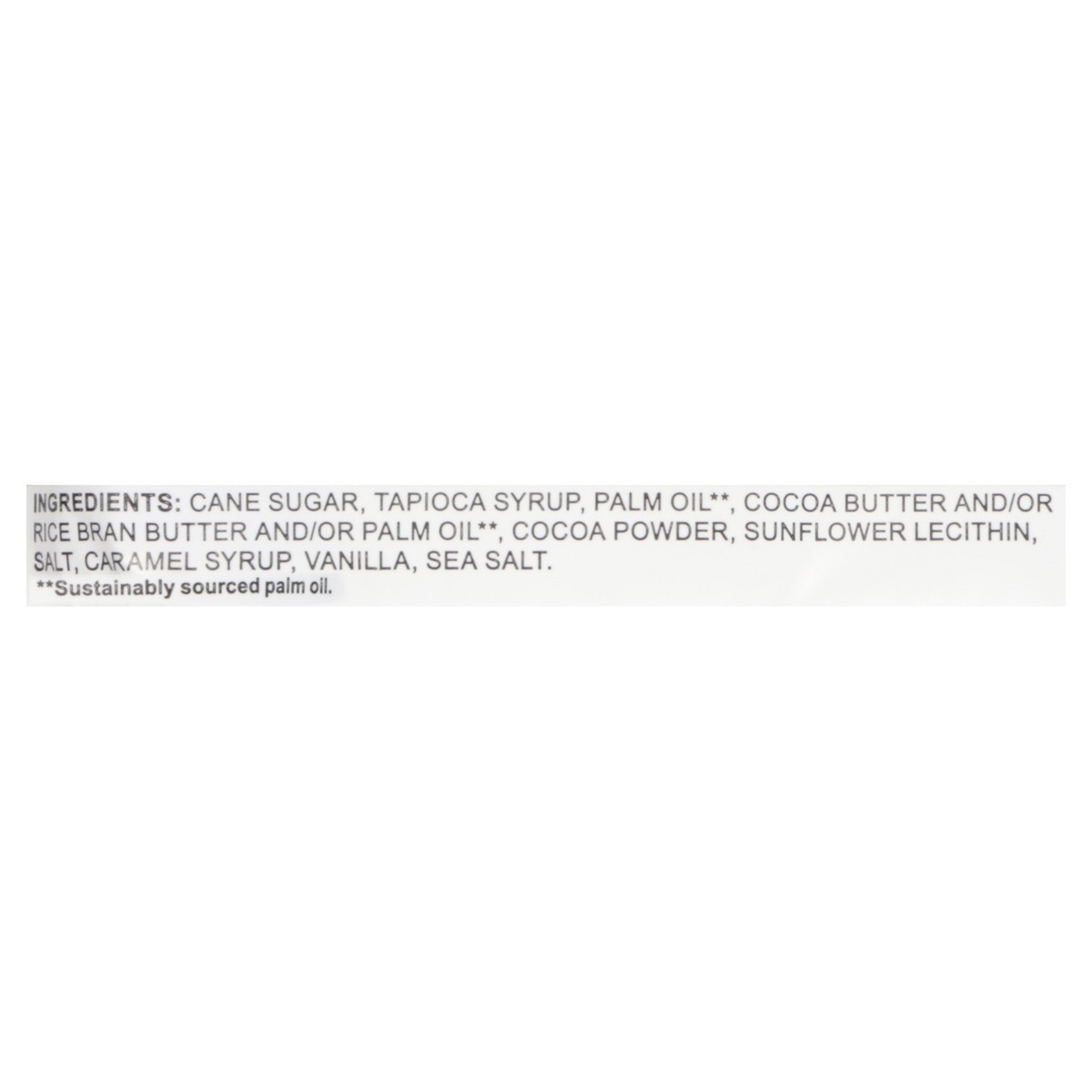 Cane Sugar, Tapioca Syrup, Palm Oil**, Cocoa Butter and/or Rice Bran Butter and/or Palm Oil**, Cocoa Powder, Sunflower Lecithin, Salt, Caramel Syrup, Vanilla, Sea Salt. ** Sustainably Sourced Palm Oil…