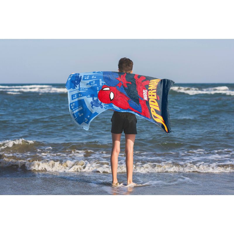 Power up every beach and pool day with this Spider-Man beach towel, generously sized at 28" x 58" for full coverage after swimming or splashing in the sun. Made from 100% cotton, it's soft to the touc…