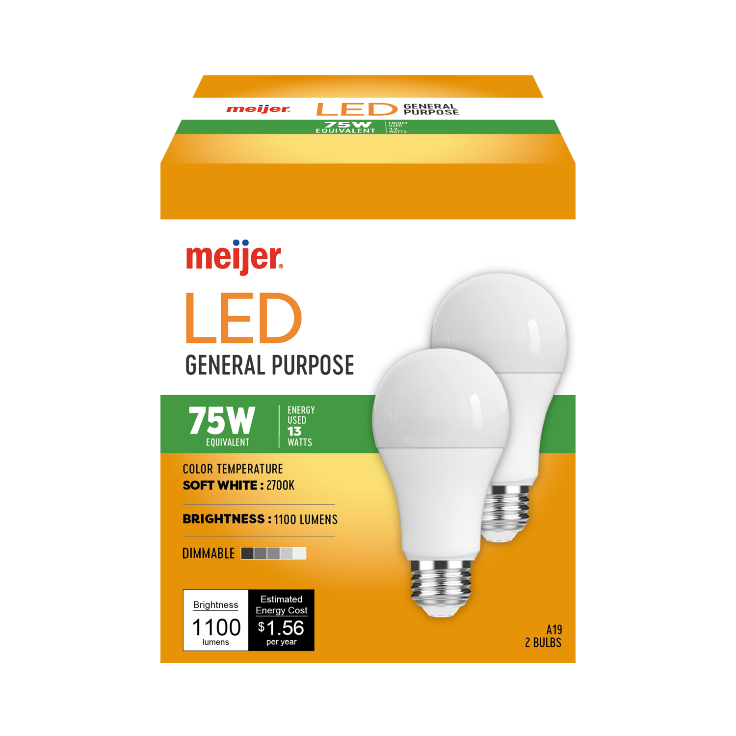 Meijer Dimmable Led 13w A19 Soft White 2700k Light Bulb, 2 Ct