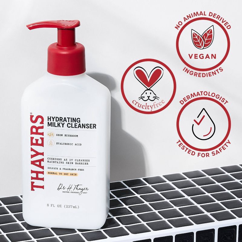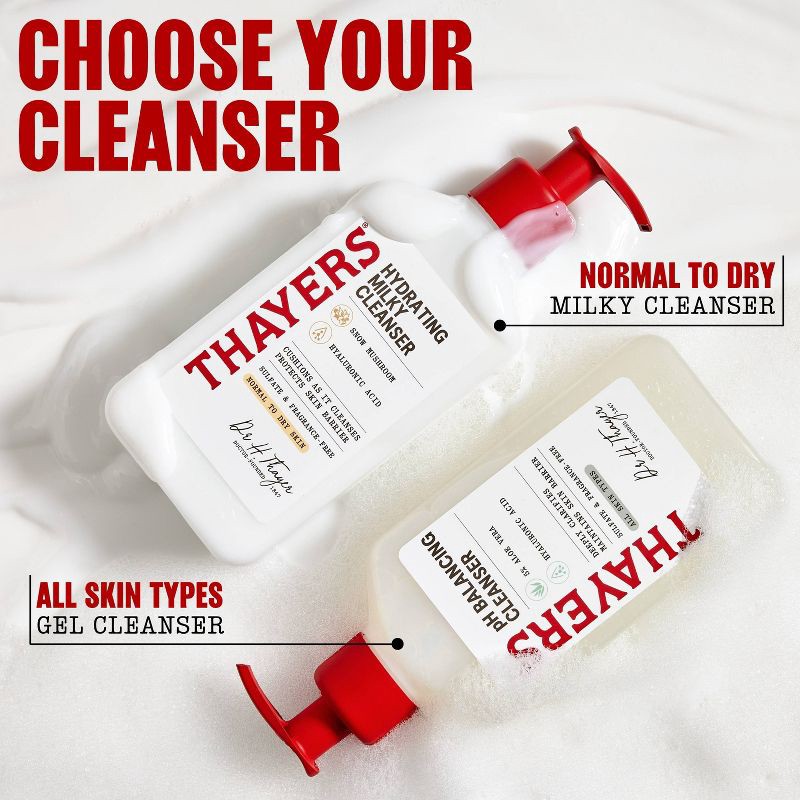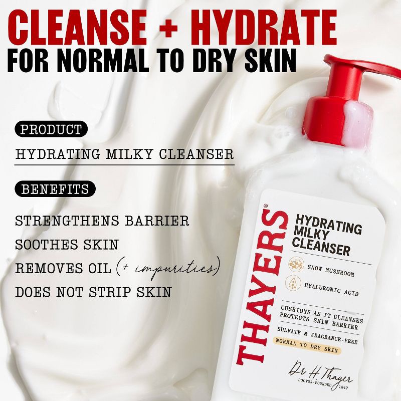- Gentle Hydrating Face Wash: Thayers milky hydrating facial cleanser removes makeup, dirt, oil, and impurities leaving skin feeling immediately hydrated, soft, and smooth; Unique milky face wash immediately hydrates and soothes dry to sensitive skin as it cleanses.