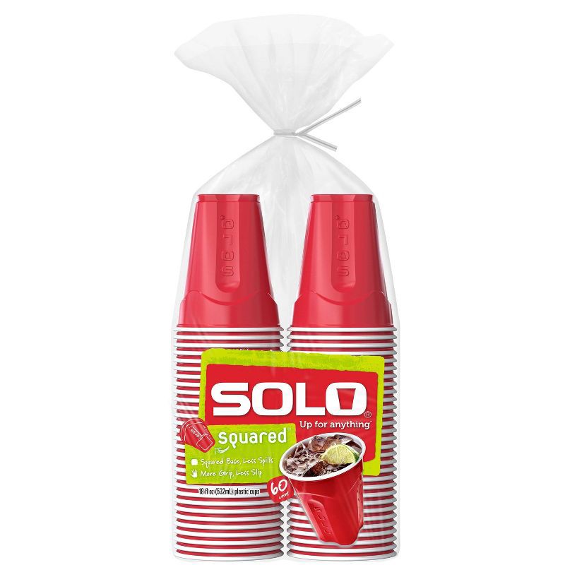 - Classic SOLO 18 oz plastic party cups, 60 count.