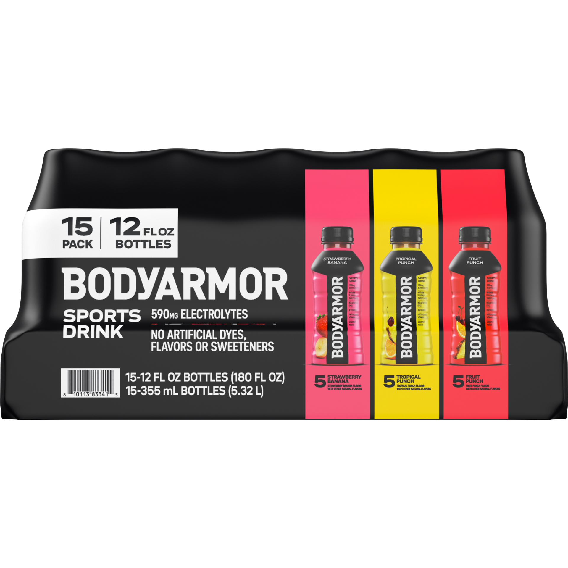 - Sweeteners or dyes.BODYARMOR Sports Drinks are packed with electrolytes and antioxidants.Made with coconut waterSports beverage made with coconut water and naturally flavored with a variety of delicious flavors to help hydrate your way to victory15 pack