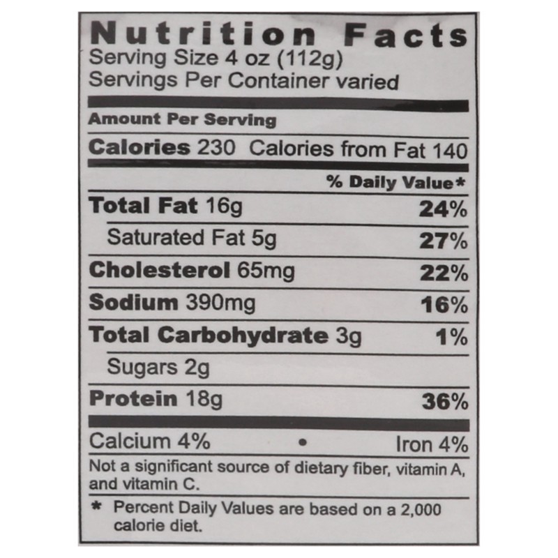 18 grams protein per serving. Gluten free(a). (a) Pork is gluten free. Seasonings contain no gluten. Our farms. Our commitments. Basted with up to 16% added solution of water, potassium chloride, vineā¦