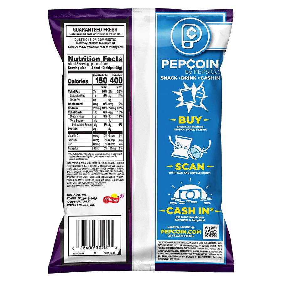 - 2.75 oz. bag of DORITOS Spicy Sweet Chili Flavored Tortilla Chips