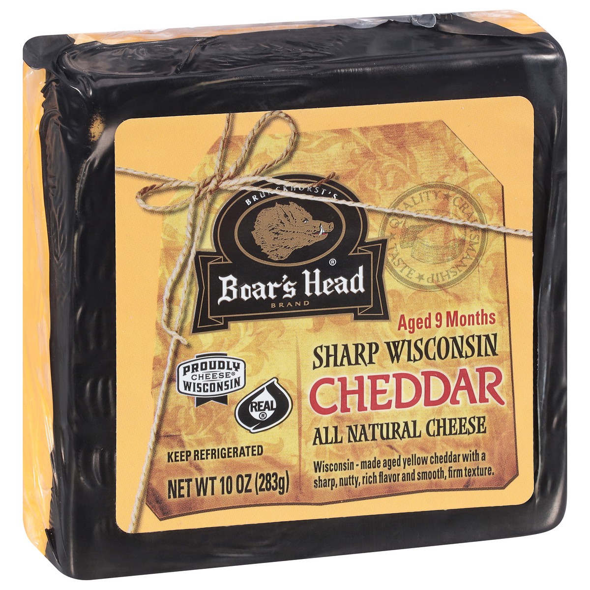 Selected by Cheese Graders at the peak of flavor, this cheese has an unmistakably sharp taste with a balanced finish. Boar's Head Wisconsin Cheddar Cheese is aged for nine months to produce its distin…