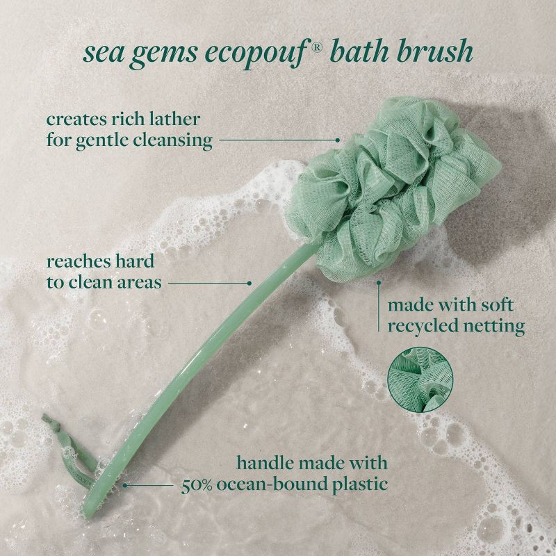 - EcoTools Sea Gems EcoPouf Bath Brush gently exfoliates and cleanses for refreshed, smoother skin