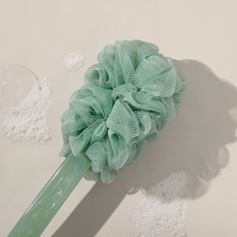 - Features soft pouf netting made with 100% recycled materials for sustainable, low-waste exfoliation