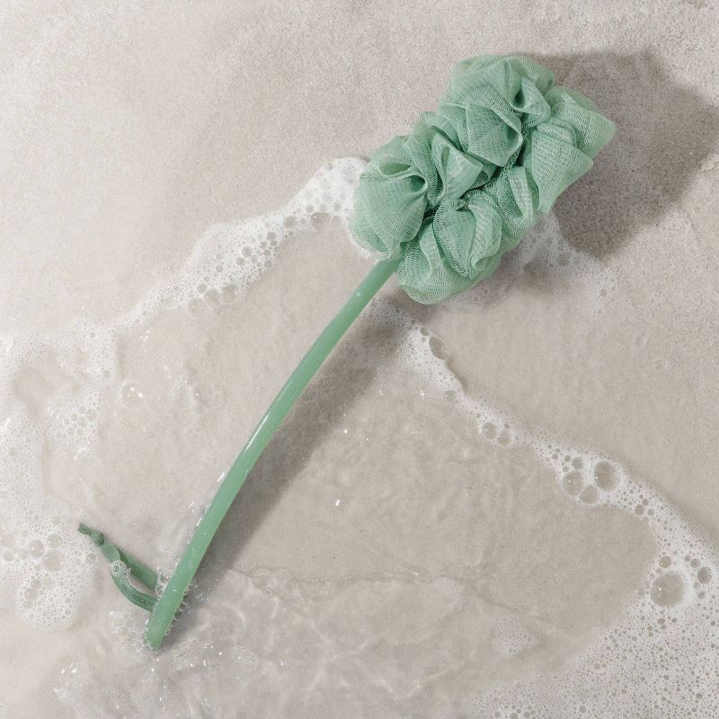 - Long handle shower brush cleanses your back, shoulders and other hard-to-reach areas